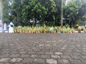Rombongan Muslimat NU Cigombong hadir dengan busana seragam berwarna hijau cerah yang khas, sambil mengumandangkan shalawat dan doa-doa di sepanjang perjalanan. Aksi mereka mencuri perhatian dan menambah nuansa religius dalam rangkaian kegiatan tersebut.